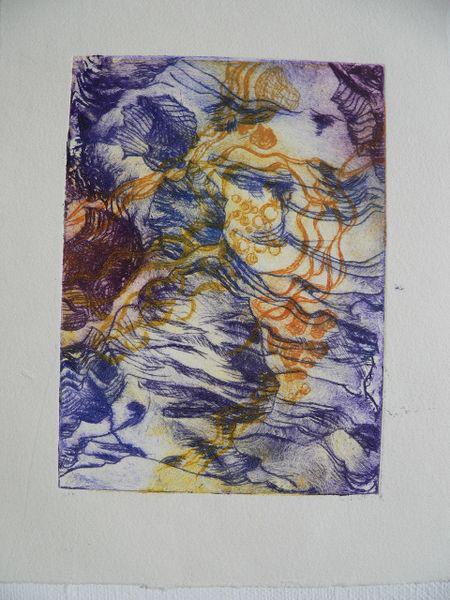Die Farbradierung ist mit zwei Druckplatten, die übereinander gedruckt wurden,hergestellt. Dabei ist jede Platte mit mehreren Farbnuancen gestaltet, die unmittelbar aufgetragen und unterschiedlich stark ausgewischt wurden.Jede Farbkombination ist einmalig.