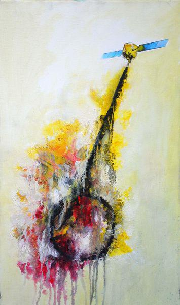 Acryl, Kreide, Papier auf Leinwand