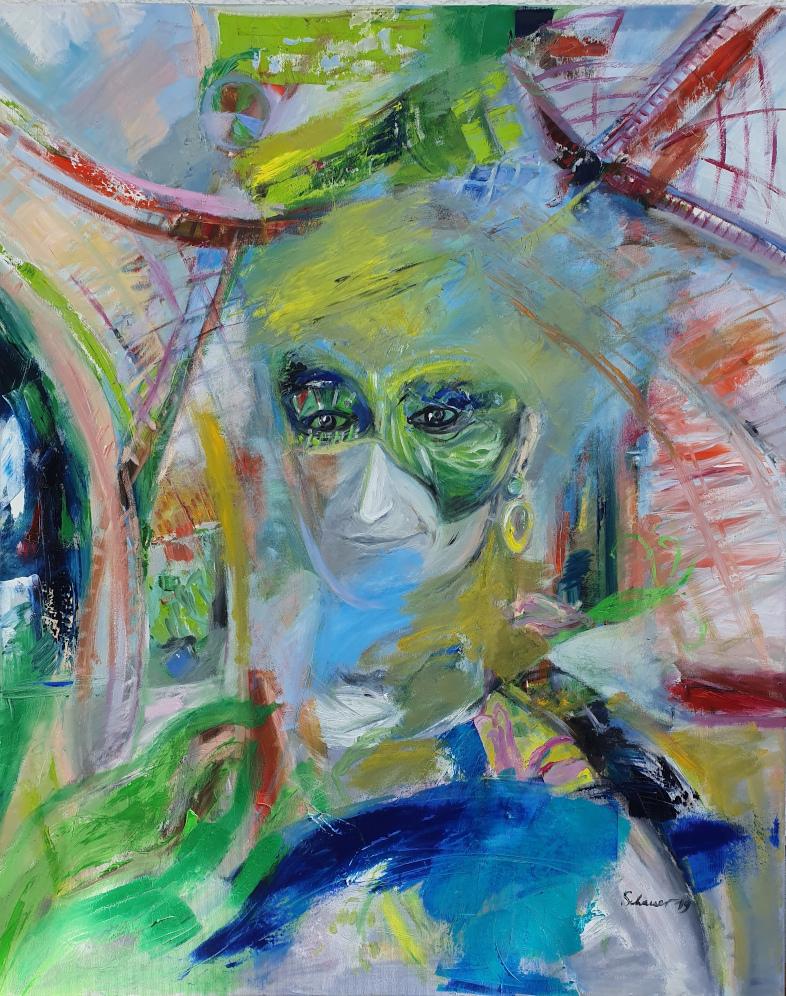 Das Bild wurde mit Öl auf Leinwand gemalt.