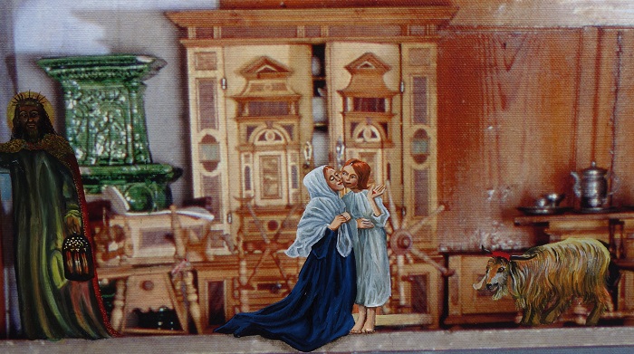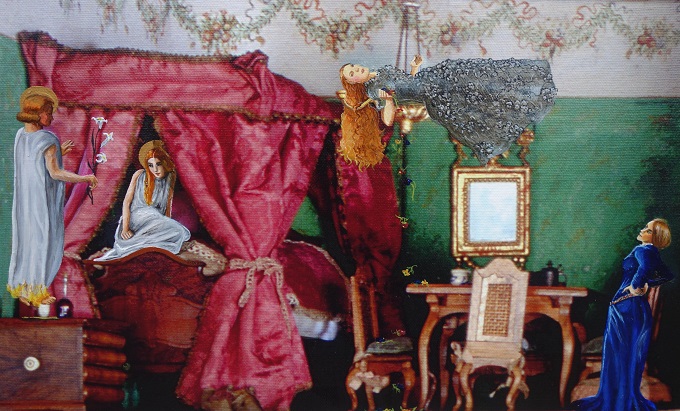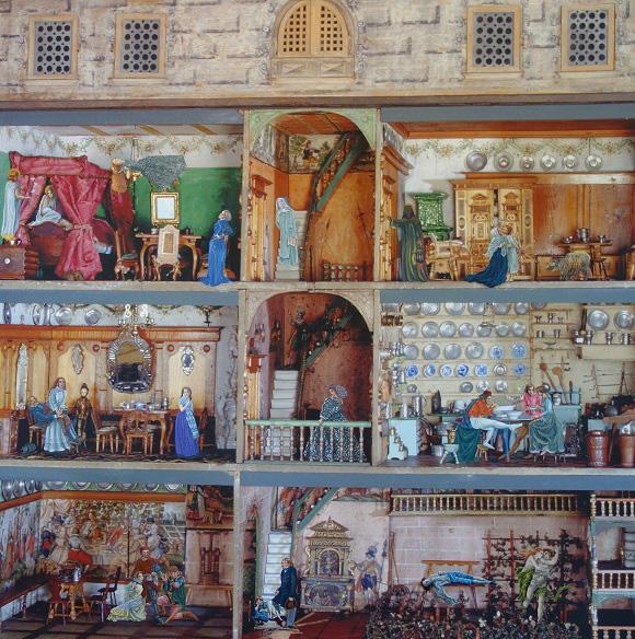 Personen aus dem Werk der Präraffaeliten haben sich in ein Puppenhaus aus Nürnberg verirrt.