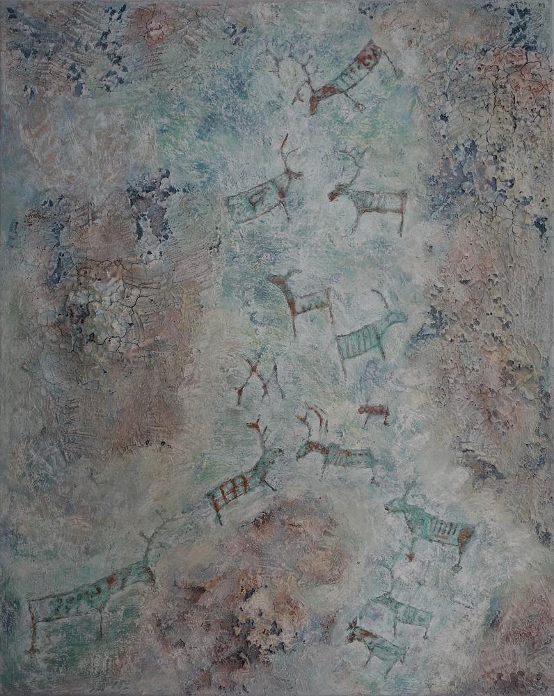 Mixed Media mit Mamormehl, Rosteffekten, Pigmenten, Acryl, Kreiden, 9/2018