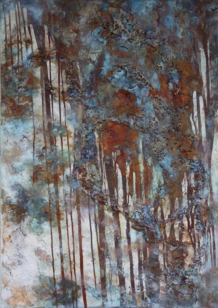 Mixed Media mit Marmorgips, Rosteffekten, Patina, Acryl, Kreidefarben, 11/2018